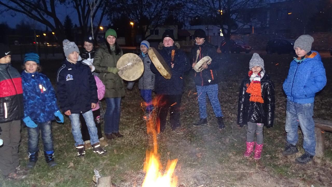 Az iskolánk Bottyán János Íjászcsapatának néhány tagja Vörös Attila vezetésével égő nyílvesszőkkel gyújtotta meg a Nyitra partján rakott máglyát.