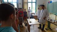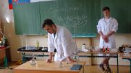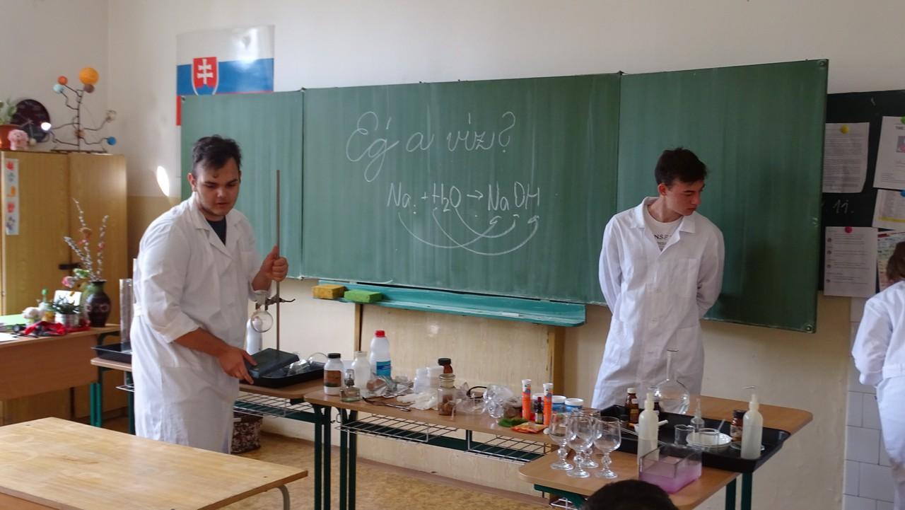 Csanda Tamás, Kecskés Martin és Lángyi Viktória a helyi Pázmány Péter Gimnázium 1.évfolyamának tanulói. Érdekes kémiai kísérleteket mutattak be az 5., 6. és 7. évfolyamos tanulóknak. A gyakorlati bemutatójuknak az ÉG A VÍZ? címet adták.