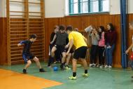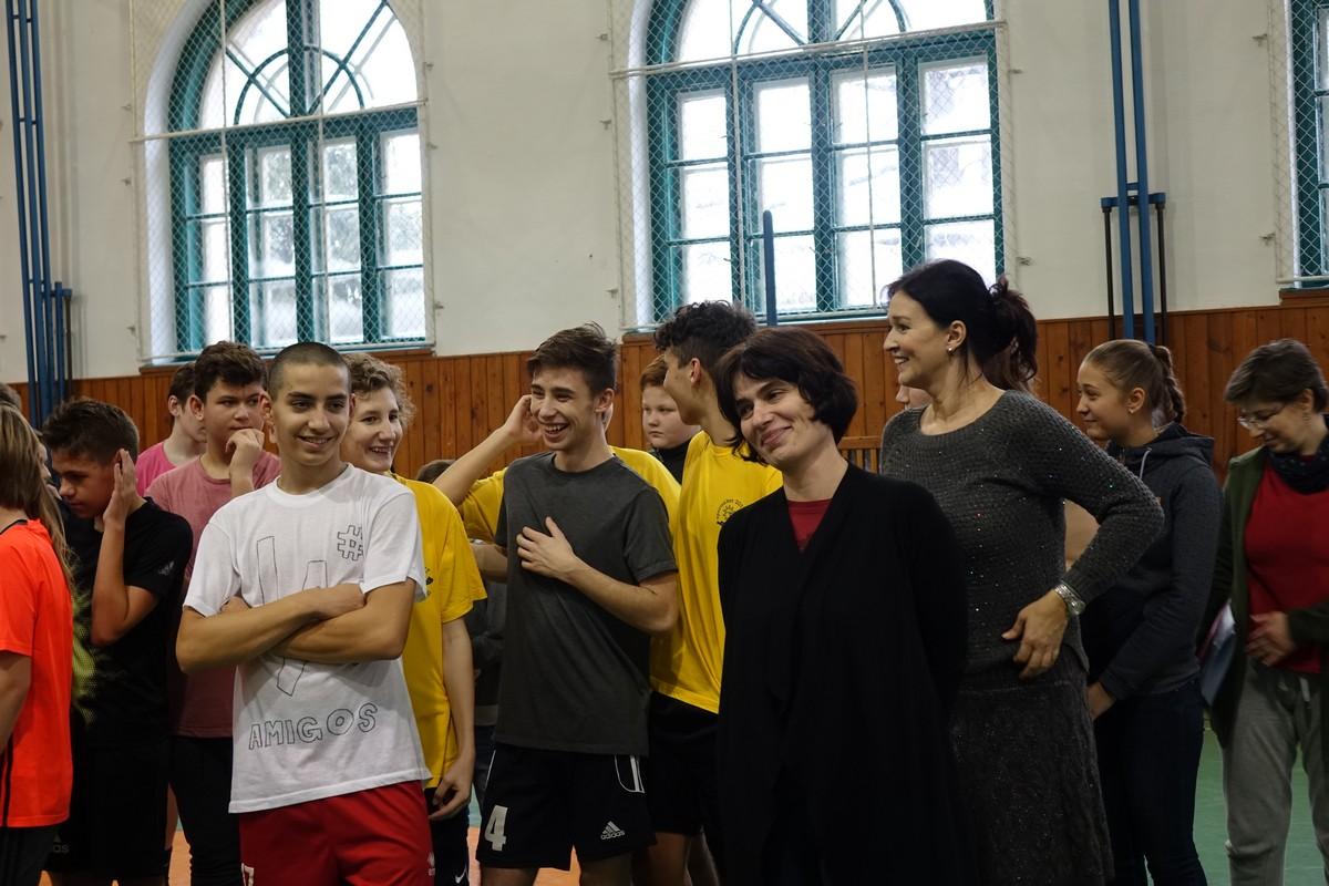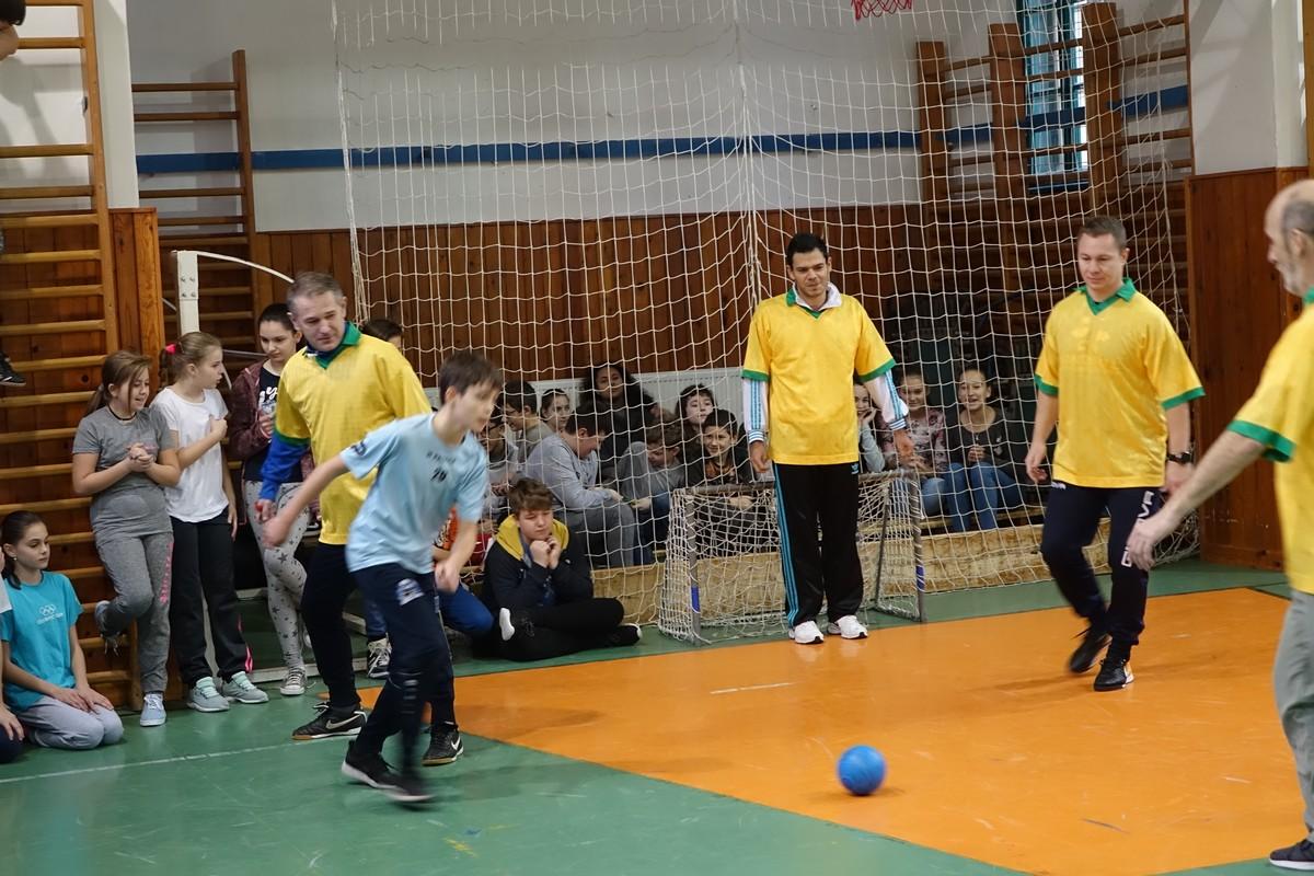 Az idei karácsonyi foci is fergeteges hangulatban telt, hiszen nem csupán a felső tagozat osztályai mérték össze rátermettségüket, hanem a tanárok /női és férfi/ csapata illetve a tavalyi kilencedikes lányok és fiúk. Az utóbbiak visszatértek egy nosztalgiameccsre az alma materbe. Ma már gimisek illetve elektrósok, de kihagyhatatlannak vélték e megmérettetést. A játékosokat kiváló szurkolóként évfolyamtársaik buzdítottak az egyre jobb teljesítményre.