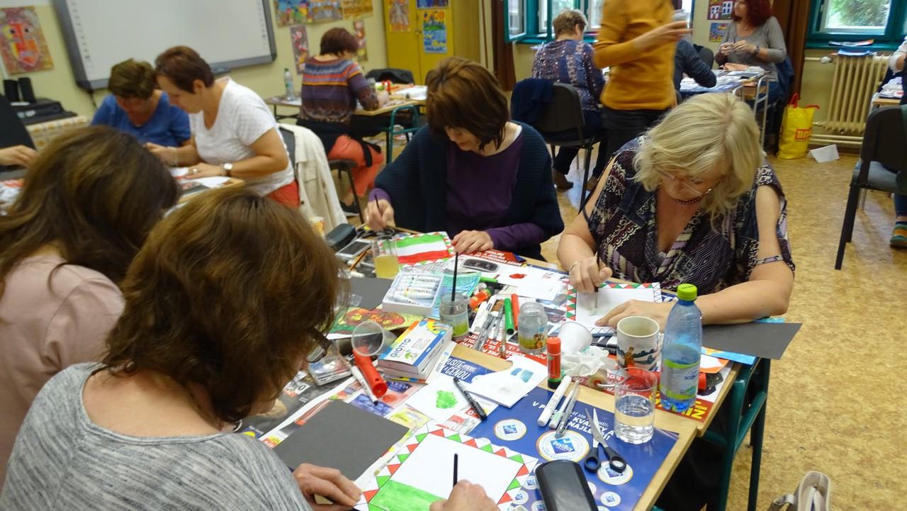 A komáromi Jókai Mór Alapiskola pedagógusainak - Jókai Éva és Tóth Andrea - irányításával új, kreatív képzőművészeti technikát sajátíthattak el az érdeklődők, melynek bizonyára hasznát veszik majd a tanításban. Hatására a tanulók keze közül is szebbnél szebb alkotások kerülnek majd ki.