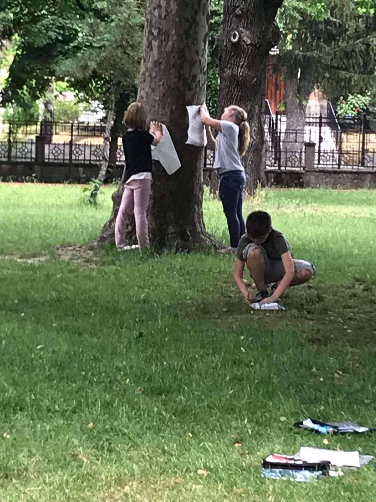Iskolánk harmadik napközis csoportja egy újfajta képzőművészeti alkotást próbált ki, méghozzá lenyomatok készítését növényekről, fák törzséről. Egyúttal kinyomoztuk a fák, bokrok helyes megnevezését enciklopédiák segítségével. Az érdekes, krétával készült lenyomatok készítése nagyon tetszett a gyerekeknek. Megfigyelés alapján, hagyományos ceruzarajzzal is lemásolták a leveleket, terméseket, fákat. Összekötöttük a természetismeretet egy kis alkotással. Köszönet Decsi Katalinnak, kinek irányításával tetszetős alkotások születtek.