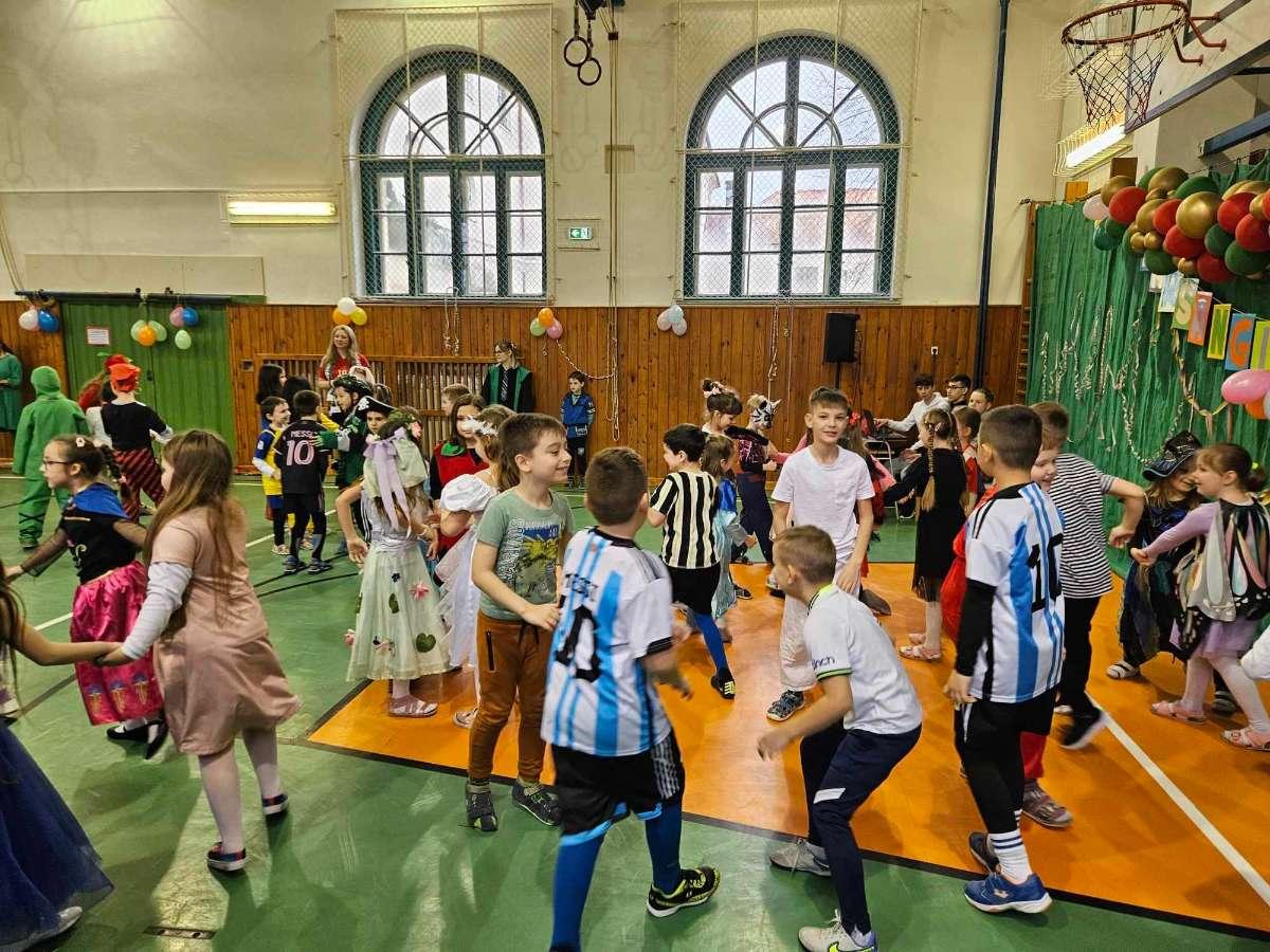 2024. február 9-én került sor az alsótagozatosok farsangi álarcosbáljára az iskola tornatermében. A rendezvényt a 2.a és 3.a osztályos tanulók energikus tánca nyitotta meg. Minden tanuló bemutatta ötletes jelmezét. A gyermekek évfolyamonként táncos versenyeken vettek részt. A fergeteges buli cukoresővel ért véget. A 9.a és 9.b osztályos tanulók hangulatos zenével biztosították a jókedvet. Mindenki kellemesen szórakozott. Krpelán Ágnes