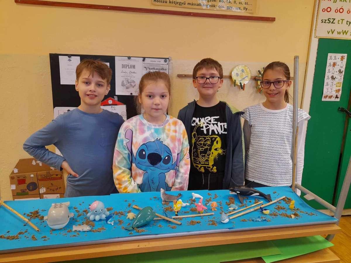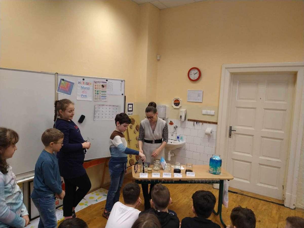 “Amikor a kút kiszárad, megismerjük a víz igazi értékét.“ Március 22-én, a Víz Világnapján iskolánkban is megemlékeztünk erről a létfontosságú, Földünkön nem minden ember számára oly könnyedén elérhető anyagról. Az alsó tagozatos gyerekek különféle aktivitásokban vettek részt. Az elsősök meghallgatták a Vízcsepp történetét, melyet a 2. B osztály tanulói mutattak be a Mesedoboz segítségével. A második és a negyedik évfolyam számára nagyon hasznos, érdekes előadást tartott és látványos kísérleteket mutatott be Koczka Bara Márta szülő. A harmadikasok felkeresték városunk négy artézi kútját, amelyek vizéből mintát vettek, majd megvizsgálták a pH értékét. Valamennyi osztály kisfilmeket nézett a víz fontosságáról, készítettek plakátokat, lapbookot. Ezenkívül interaktív feladatokat is oldottak. A napközis és a délelőtti kézműves foglalkozás keretében többféle alkotás született. A gyermekek különleges ötleteket valósítottak meg, amelyek közül többet az iskolai kiállításon is bemutattunk. Bízunk abban, hogy jó pár diák számára tudtunk olyan hasznos és maradandó információval szolgálni, aminek segítségével saját életét környezetének védelmével összehangolva tudja megszervezni, élni. Az alsó tagozat nevében Dékány Anett