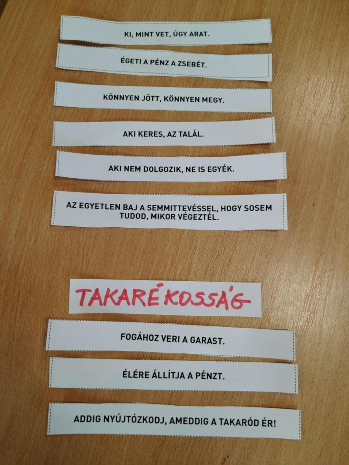 A pénzügyi jártasság hetét tartottuk az elmúlt héten az alsó tagozaton. A gyerekek arról vitatkoztak, mi az érték, mi vehető meg pénzért, milyen kiadásaik vannak a családoknak. Új fogalmakkal is megismerkedtek, mint a készpénz, a gazdálkodás, a spórolás, megtudták, mire szolgál a bankkártya és hogyan lehet pénzt kivenni a bankból. Pénzzel kapcsolatos feladatokat, rejtvényeket, közmondásokat fejtettek, játszottak, valamint a vásárlást is kipróbálták. Igazán hasznosanak bizonyultak a foglalkozások. Kováč Sylvia, szervező