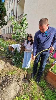 A fák több száz évig is élhetnek. Tehát ha egy fát elültetünk, azzal nemcsak a jelenkornak, hanem a jövő generációinak jóllétéért is teszünk. Az egészséges környezet, a levegő tisztán tartása, az árnyékadó lehetősége és az élőlények természetes közegének kialakítása mind célja volt a kis elsőseinknek.