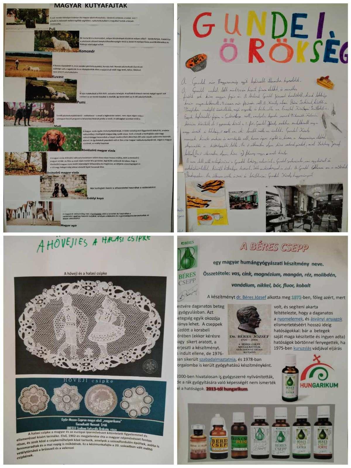 Nemzeti ünnepünk jegyében zajlott a Hungarikumok témahét a 4.B osztályban. Először megismerkedtünk a magyarságra jellemző kiemelkedő, egyedi, különleges vagy magas minőségű termékekkel, majd prezentációkat készítettünk róluk. Ezután az egyes termékeket külön is bemutattuk egymásnak projekt formájában. Rajzoltunk magyar huszárt, sőt a fiúk huszárcsákót gyártottak, míg a lányok babákat öltöztettek kalocsai hímzésű ruhákba. Nem hagytuk ki az élelmiszertermékek kóstolását sem - készítettünk magyaros reggelit, sütöttünk kürtőskalácsot, ittunk kamillateát. És gyűjtöttünk „magyar“ tárgyakat, amelyekből egy remek kiállítás is született. Igencsak gazdag, élményekkel teli és tanulságos hét van mögöttünk. Kováč Sylvia osztályfőnök