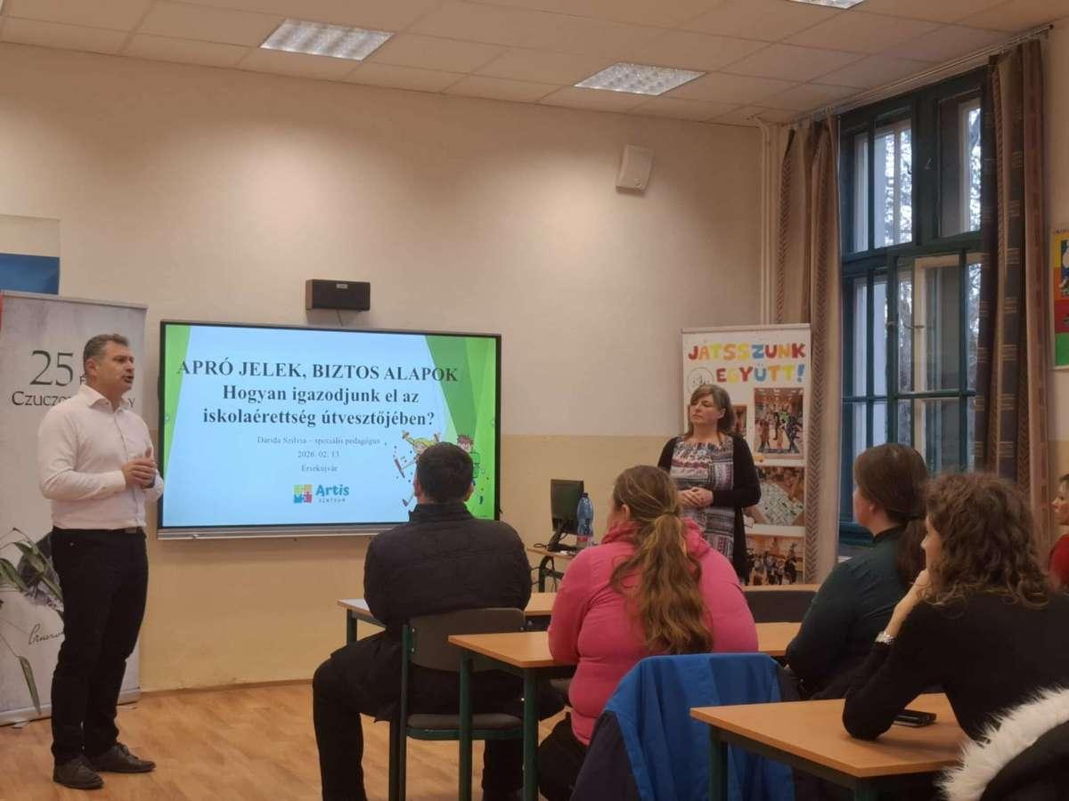 Ez idő alatt a szülők hasznos és tartalmas előadást hallgathattak meg az Artis Centrum speciális pedagógusától: Darida Szilviától, aki az iskolaérettséggel kapcsolatban osztott meg érdekes, gyakorlatban is jól hasznosítható információkat.