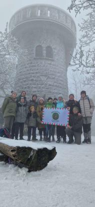 A hétvégén megvalósult 5. „Kalandra fel!” túránk ezúttal vonattal indult, így már az utazás is közös élménnyé vált. Nagymaroson megmásztuk a Szent Mihály-hegyet, majd a gyönyörű, havas tájba burkolózó Julianus-kilátóhoz érkeztünk. A kilátó lábánál elfogyasztott ebéd elegendő erőt adott a folytatáshoz, hiszen a Remete-barlanghoz vezető lejutás igazi kalandos történetté vált, ahol szükség volt figyelemre, összpontosításra és csapatmunkára is. A csapat kitartásának és bátorságának köszönhetően a visszaút előtt még egy megérdemelt forró csokira is jutott idő.
