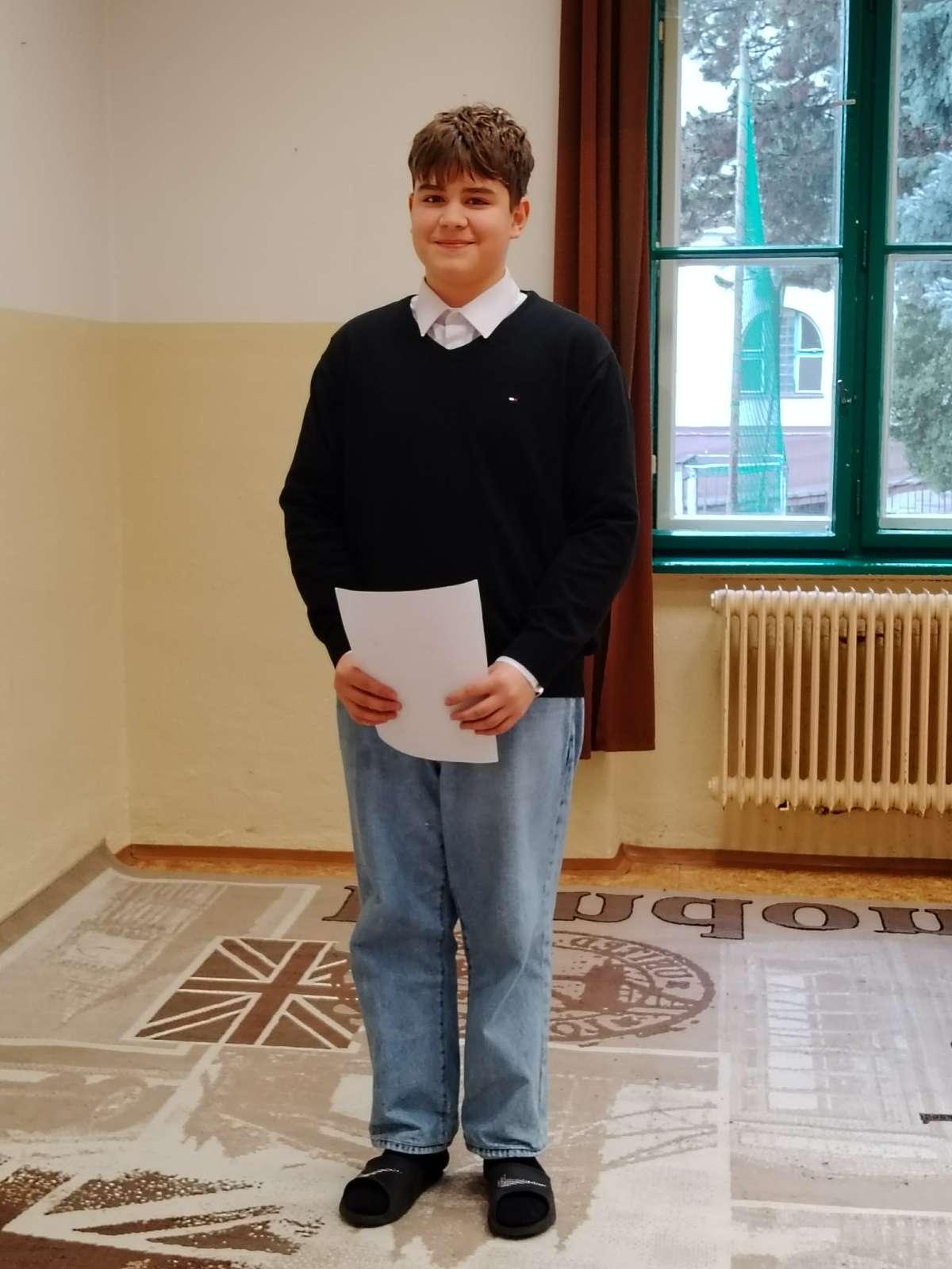 3. helyezett: Zemes Tamás, 9. B