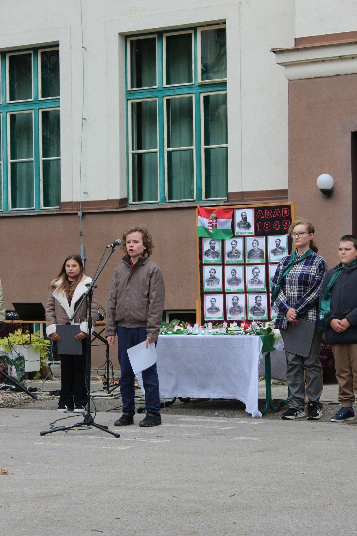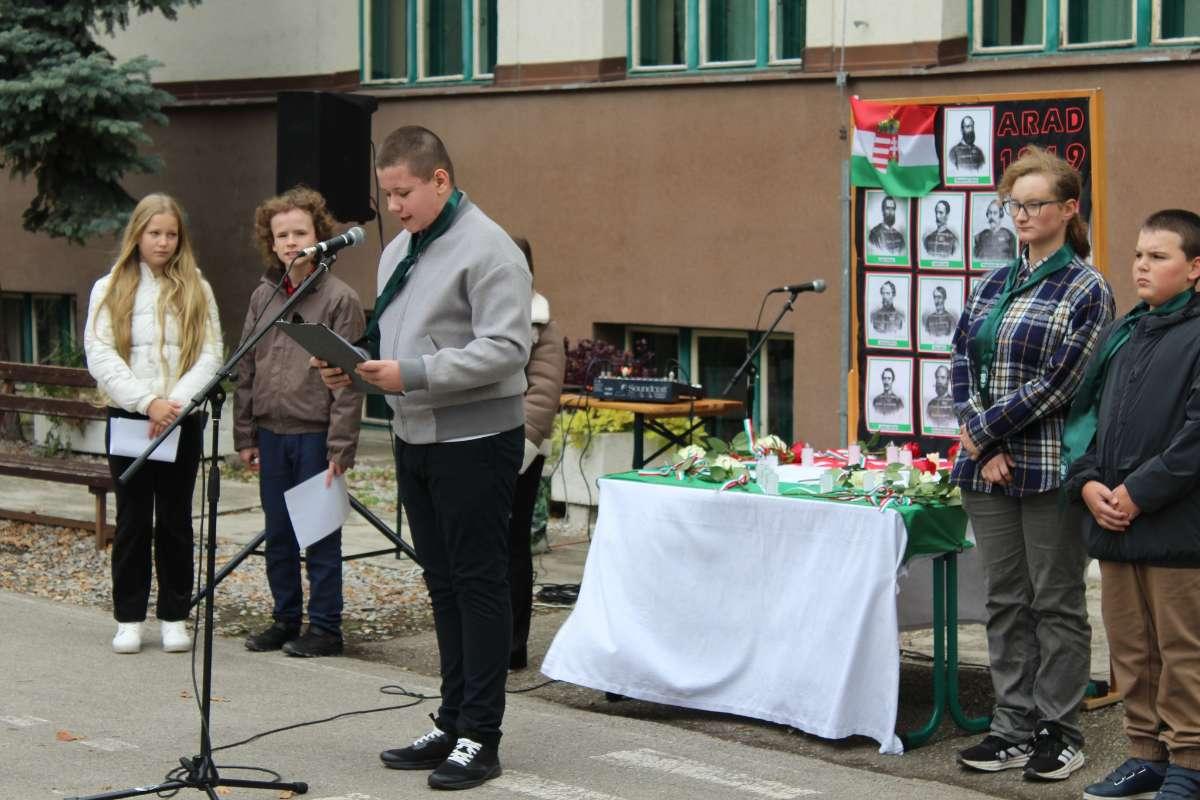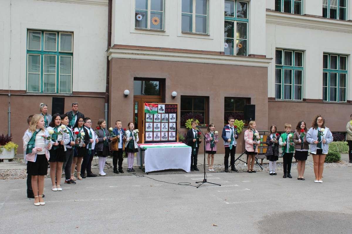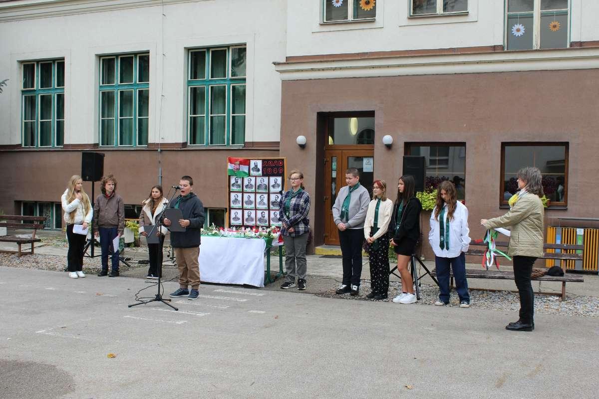 Október 6-án, az aradi vértanúk és Batthyány Lajos miniszterelnök kivégzésének évfordulóján a 4. A, valamint a 7. A és B osztály tanulói zenés - irodalmi összeállítással tisztelegtek a hősök előtt. Beszédet mondott Priskin Zoltán igazgató. A megemlékezést az iskola udvarán koszorúzás zárta.