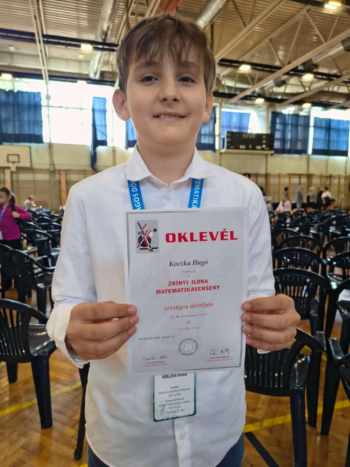 Koczka Hugó a 6. osztályosok között a 23. helyet szerezte meg.