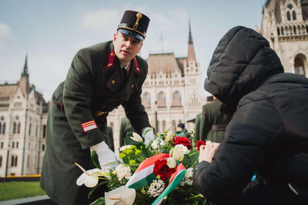 A hivatalos ünnepség 11 órakor kezdődött Nagy Csaba előadásával. Ezután a Himnuszt hallgattuk meg, majd a köszöntők után elhangzott a Rákóczi-induló, amelyet a 100 Tagú Cigányzenekar adott elő. Ünnepi beszédet mondott Gulyás Gergely, majd a Magyar Nemzeti Táncegyüttes műsorát is megtekinthettük. Nagyon érdekes volt Takaró Mihály rendhagyó tanórája is.