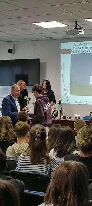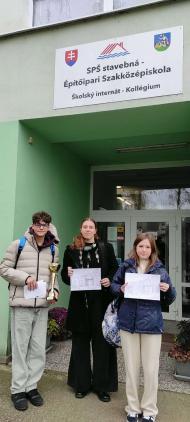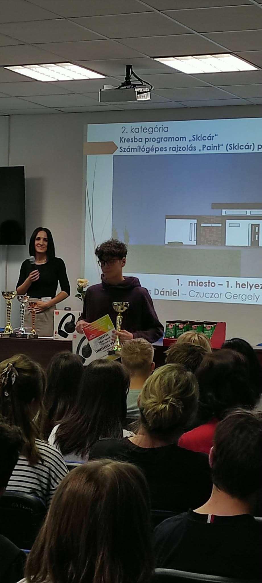 Takács Dániel (9.B) a számítógépes rajzolás kategóriába, Zelenai Réka Lea és Staňo Leila (9.B) a szabadkezes rajz kategóriába nevezett be. A sok gyakorlás és a tavalyi év tapasztalata meghozta gyümölcsét. 77 résztvevő közül Takács Dániel, a fantasztikus 1. helyen végzett. A tárgyi nyereményen kívül 10 pontot is kapott a felvételi pontszámaihoz. Daninak és lányoknak is gratulálunk és további sikereket kívánunk.