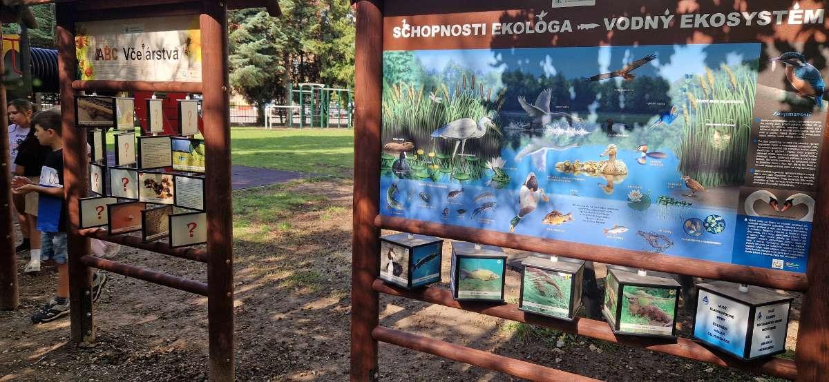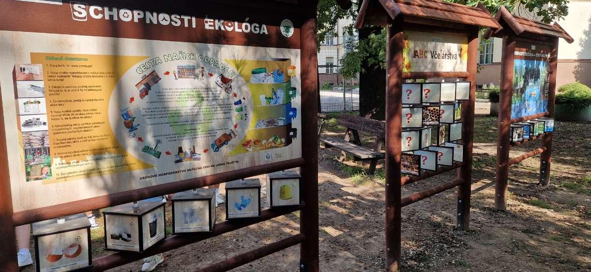 Na školskom dvore boli umiestnené štyri edukačné tabule s environmentálnou a vzdelávacou tematikou, ako recyklácia, ochrana prírody, kolobeh vody či význam opeľovačov. Každá z nich obsahuje interaktívne prvky, ako otočné mechanizmy a skryté okienka, ktoré umožňujú deťom hravou formou získavať nové vedomosti, zlepšovať koncentráciu a pozorovacie schopnosti.